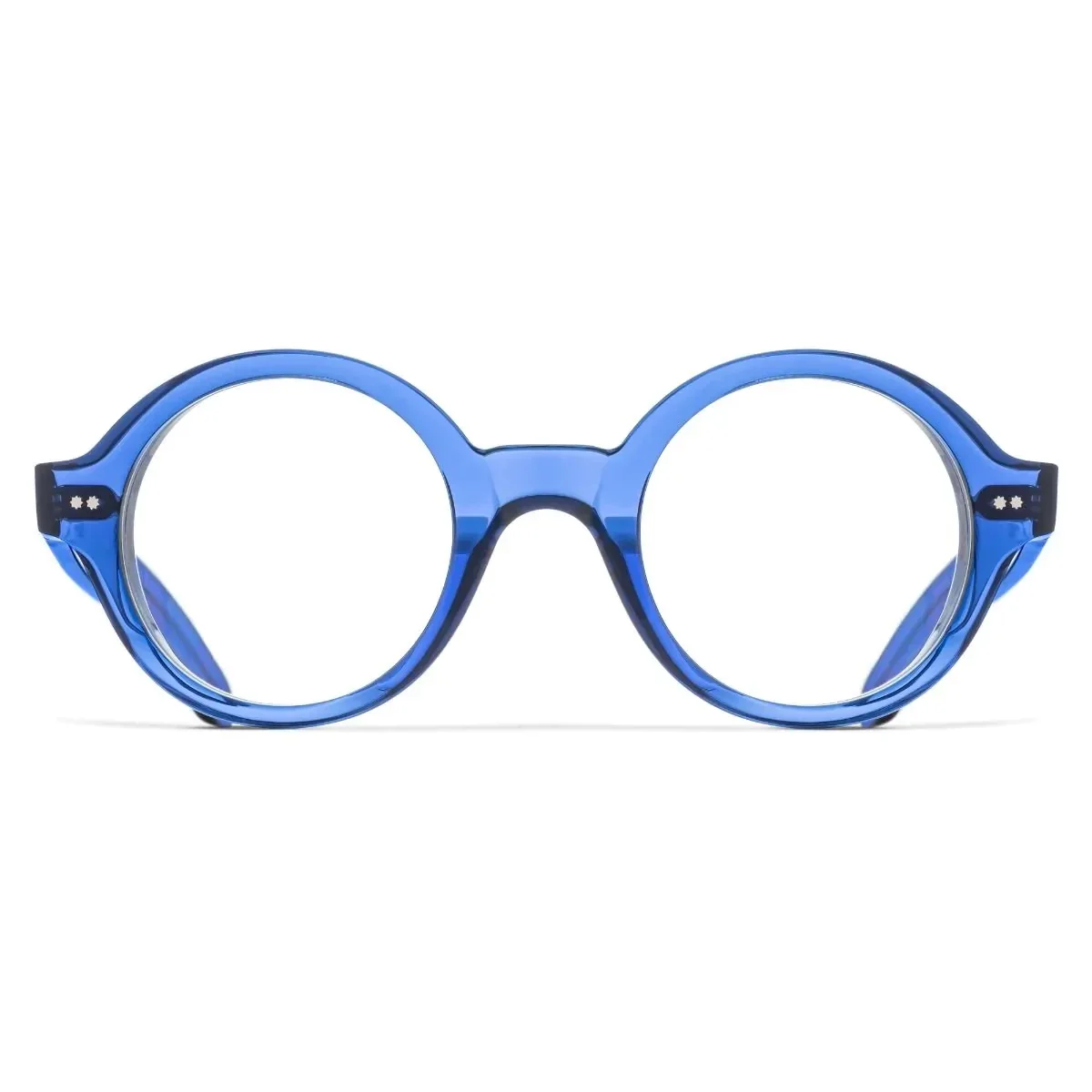 De excentriciteit van dit montuur is terug te vinden in het hele ontwerp, van de achtpuntige kompaspennen tot de perfect ronde glazen en opvallende acetaatkleuren.