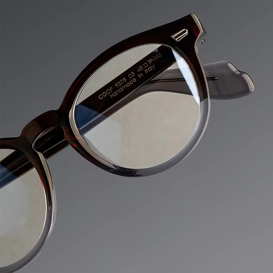 Gepolijste Oyster- en Compass Star-spelden, met legendarische motieven, verlenen prestige aan de 9378. Het is handgemaakt in een ronde vorm die doet denken aan de klassieke Pantos-monturen die in de jaren 70 in de oorspronkelijke werkplaats van Cutler & Gross werden gemaakt.