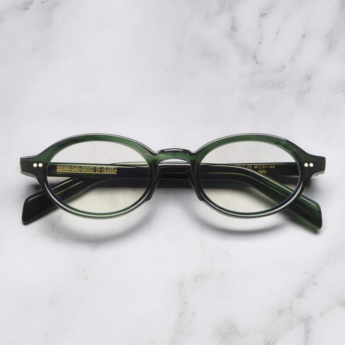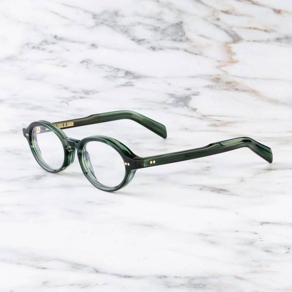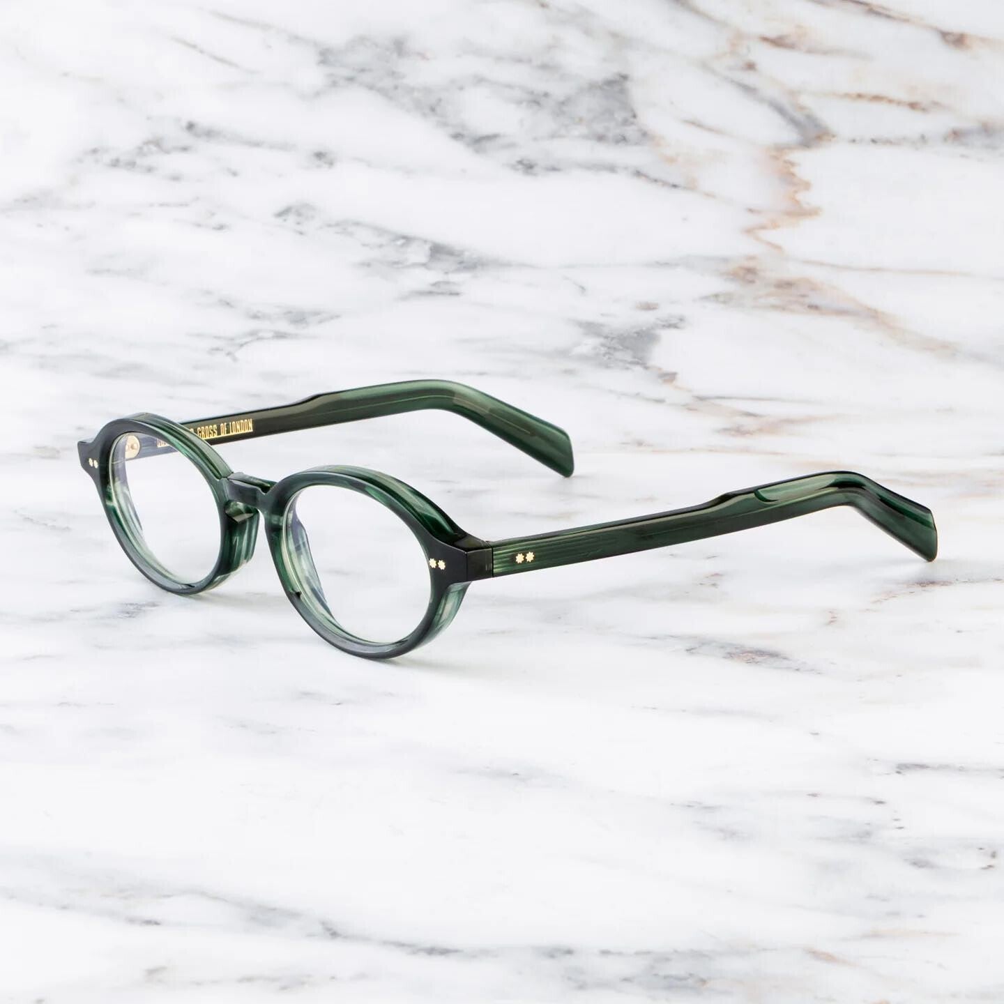 De golvende wenkbrauwlijn en ovale stijl van de GR13 zorgen voor een onderscheidende en evenwichtige afwerking. De stijl is gemaakt van 8 mm gefreesd acetaat voor comfort en is gebaseerd op monturen uit de collectie van oprichter Graham Cutler, ontworpen voor kleinere en slankere modellen.