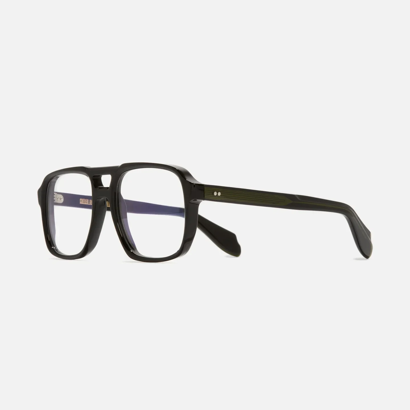Een archiefmontuur van Cutler & Gross uit de jaren 70 legde de basis voor de 1394. Het is handgemaakt van acetaat met een elegant profiel, vierkante glazen en een dubbele brug. Gepolijste Compass Star-spelden sieren de veren.