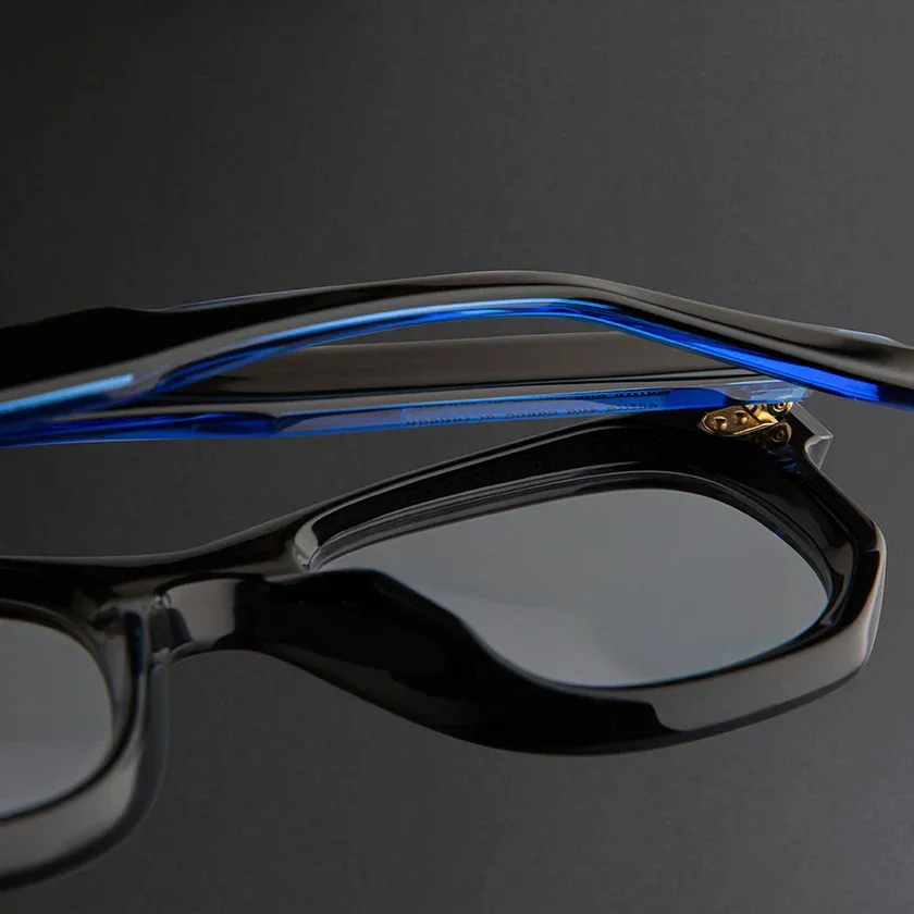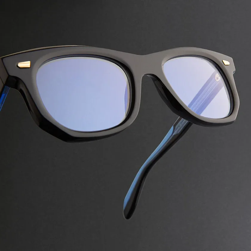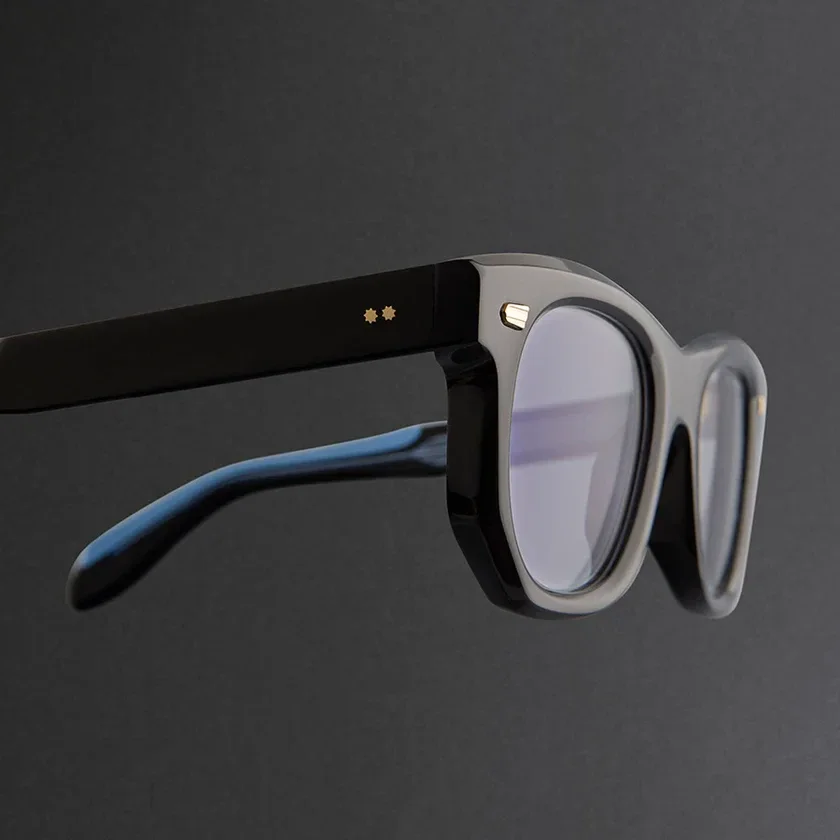 De optische 1409 keek naar de gevleugelde frames die in de jaren vijftig en zestig op het witte doek werden gedragen. Een gebogen wenkbrauwbalk en afgeplatte randen ondermijnen de verwachtingen, terwijl nauwkeurig geplaatste neuspads een universele pasvorm creëren. Oesterpinnen geven glans aan de voorkant.