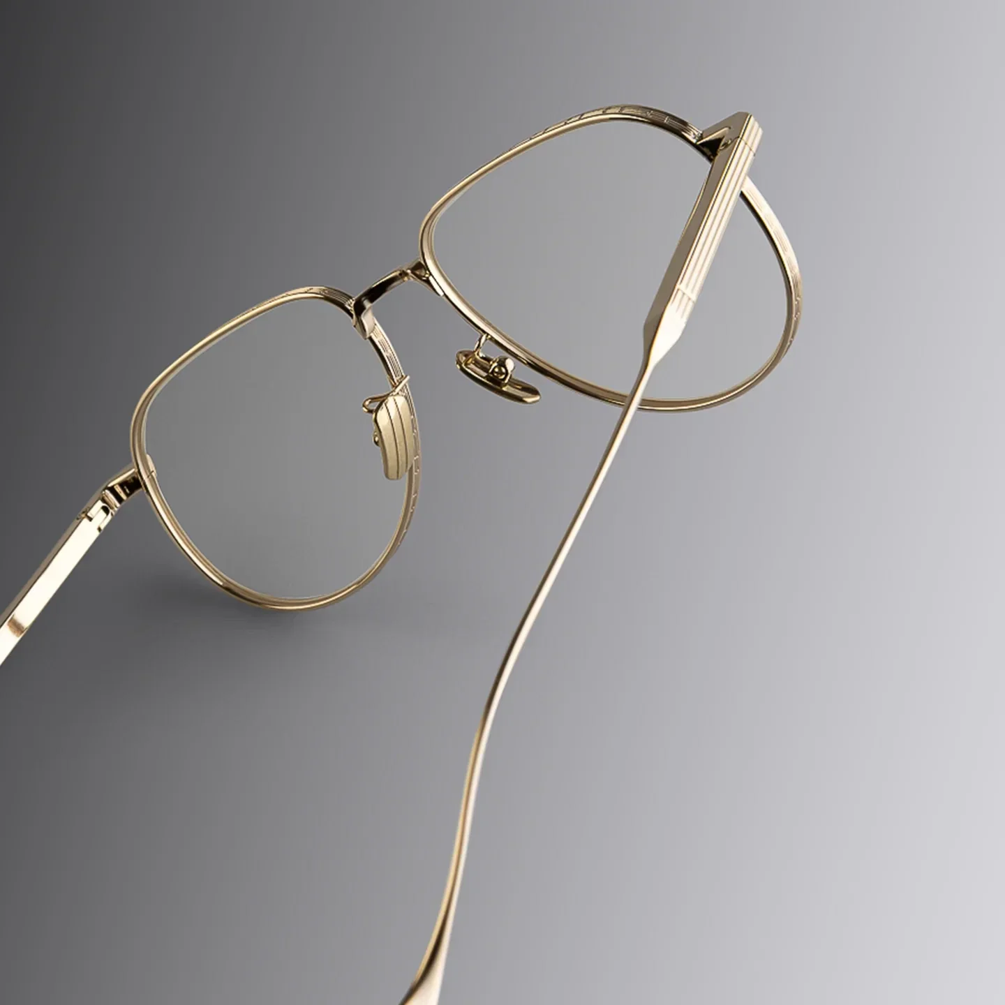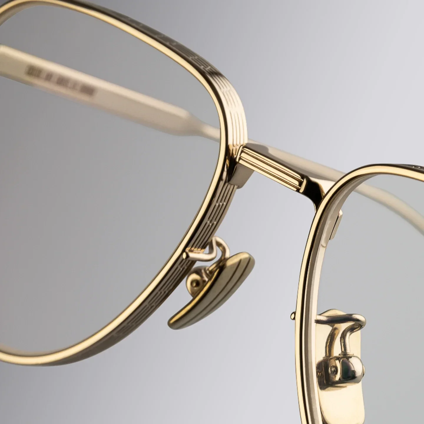 De Pembroke 1429 is een eerbetoon aan de archetypische pilotenbril, maar toont tegelijkertijd de ingetogenheid van puur Japans titanium. Deze met de hand vervaardigde bril is een toonbeeld van balans, met de iconische Oyster-sluiting als een geëvolueerd kenmerk op de neusbrug en de scharnieren als een subtiele verwijzing naar het erfgoed van Cutler & Gross, geïnspireerd op de Britse supercars die in de jaren 60 en 70 in Londen te zien waren.