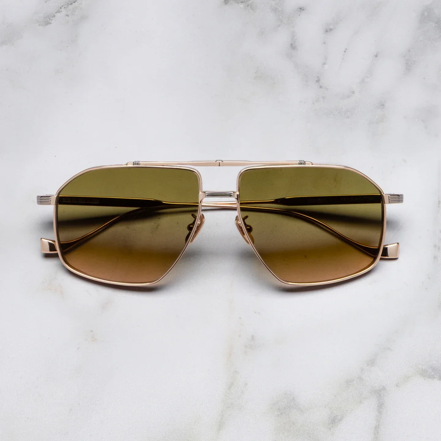 De Kensington 1424 is een toonbeeld van de perfecte balans tussen sterkte en lichtheid. Deze navigatorzonnebril is vervaardigd uit Japans titanium met uiterste precisie en voelt bijna gewichtloos aan. De Oyster-pin is subtiel verwerkt, zelfs in de gegraveerde neuspads, een geheim keurmerk dat de ambachtslieden eert zonder het opzichtig te tonen.