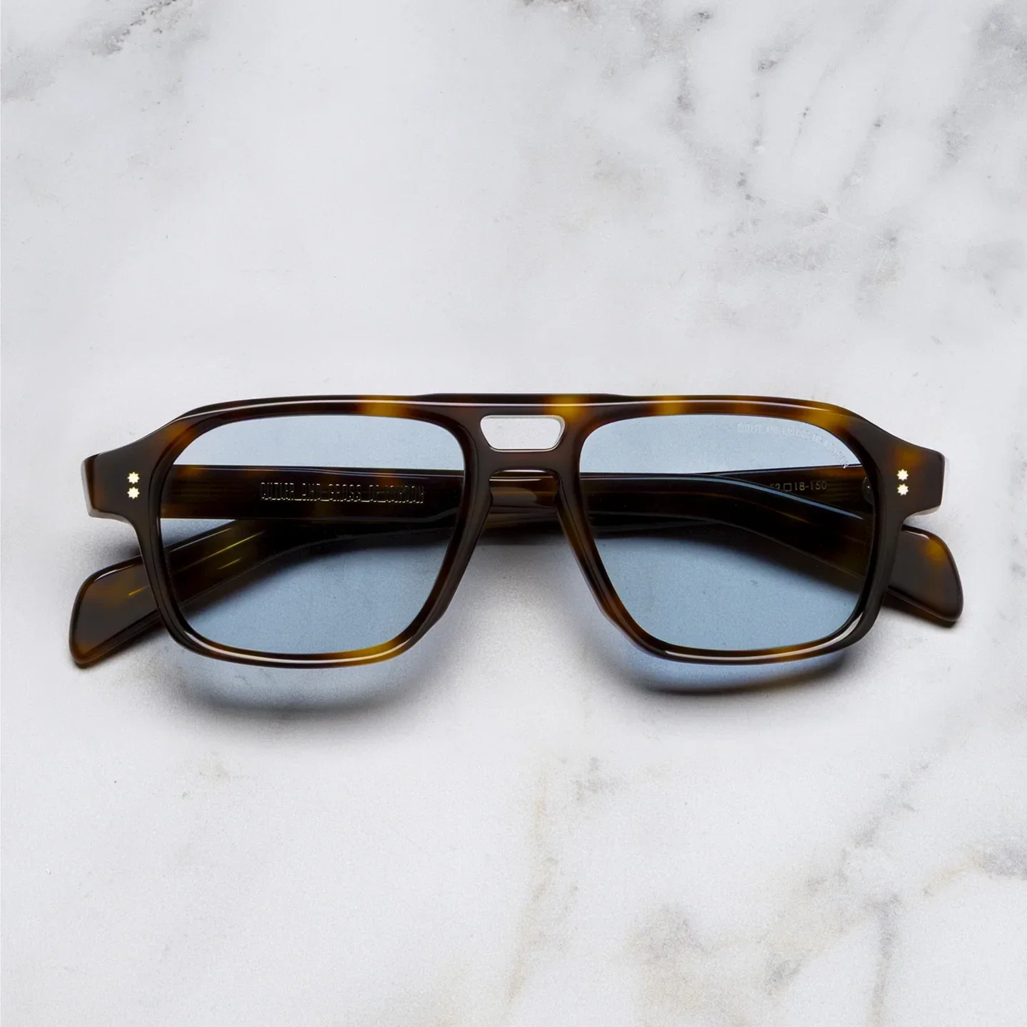 Deze collectie is gebaseerd op de persoonlijke archieven van oprichter Graham Cutler en is gebaseerd op een geheim arsenaal aan monturen, ontworpen voor slankere gezichten. De GR15 is een kleinere versie van onze bestseller, de 1394 Aviator, hier afgewerkt met een dubbele wenkbrauwbalk en 8-sterren kompasspelden als knipoog naar de archieven van Cutler en Gross.